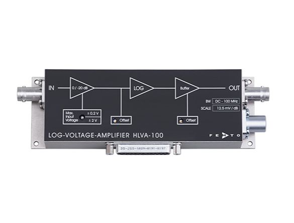 HLVA-100 提供高達 80dB 的寬動態范圍。該設備具有直流耦合輸入和僅 5ns 的上升/下降時間,是測量快速且高動態脈沖的理想工具。其輸入電壓噪聲極低,僅為 2nV/√Hz。對數增益曲線為小信號提供高增益,而對大信號則提供相對較低的增益。因此,HLVA-100 是具有高動態范圍信號和需要信號壓縮應用的理想放大器。